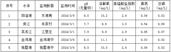 2024年3月蘇州工業園區地表水監測結果