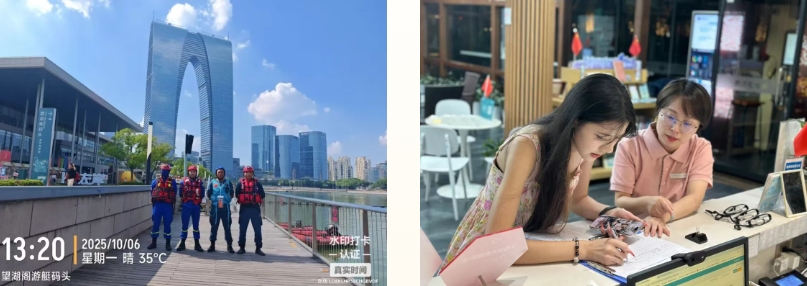 雙節(jié)假期,金雞湖景區(qū)游客中心和碼頭增加了“小水滴志愿者”,為市民游客提供引導(dǎo)和幫助。景區(qū)管理中心聯(lián)合屬地企業(yè)、景區(qū)執(zhí)法部門、應(yīng)急救援等22家單位,強化值班值守制度,及時處理各類涉旅問題,不斷提升游客體驗感、滿意度。環(huán)湖各碼頭、文化場所、游客中心、驛站、摩天輪等相關(guān)載體工作人員堅守一線窗口,以微笑服務(wù)迎接每一位市民游客。藍天救援隊每日水上巡防、各屬地一線安保人員齊齊在崗,為市民游客中心營造了安心、舒心的假日環(huán)境。