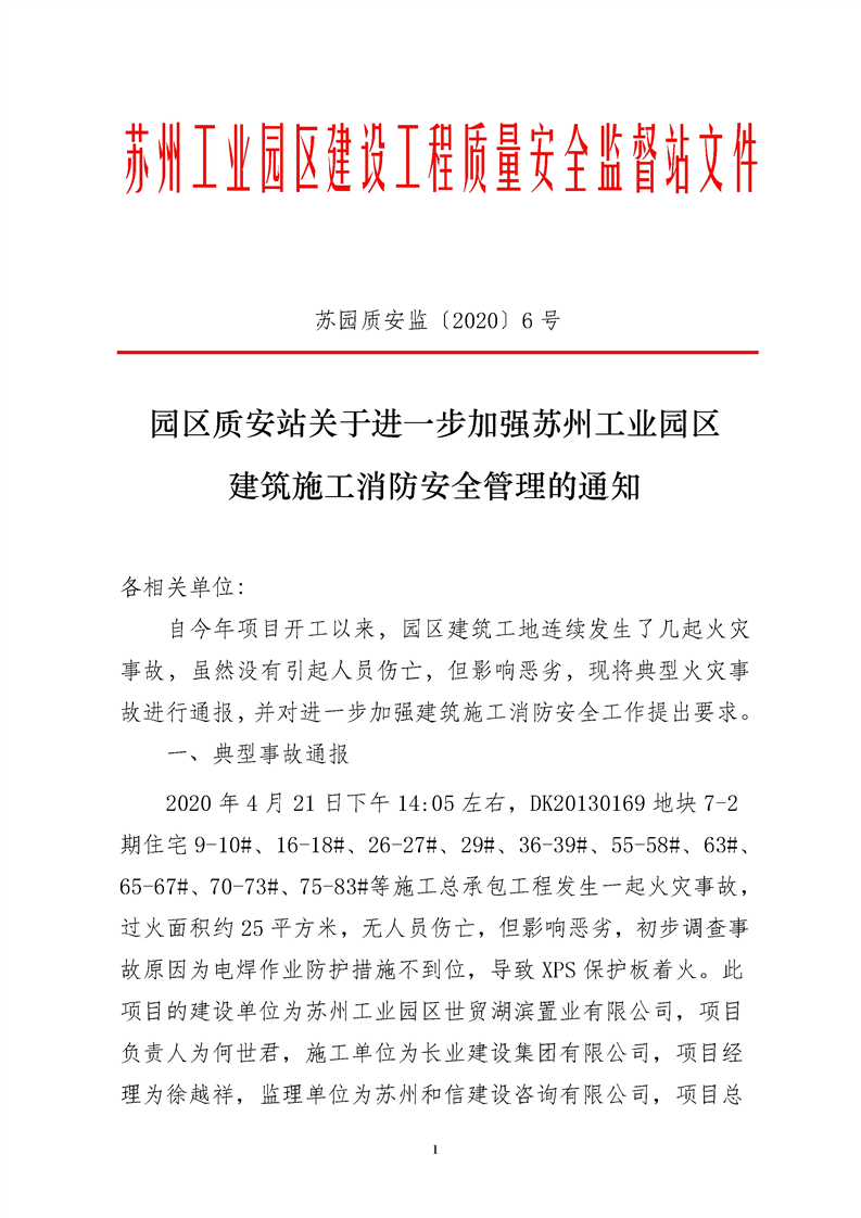 園區質安站關于進一步加強蘇州工業園區建筑施工消防安全管理的通知