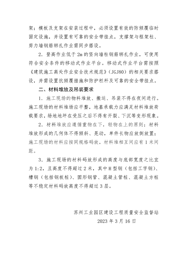 園區(qū)質(zhì)安站關(guān)于進一步加強建筑施工現(xiàn)場鋼筋綁扎和材料堆放吊裝作業(yè)安全管理的通知