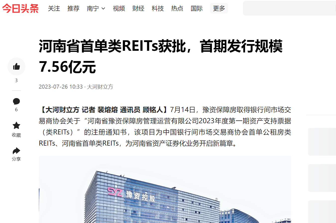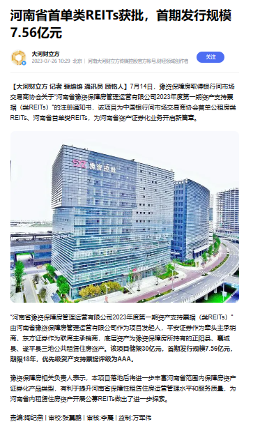 本項目落地后將進一步豐富河南省范圍內(nèi)保障房資產(chǎn)證券化產(chǎn)品類型,有利于提升河南省保障性租賃住房運營管理水平和服務質(zhì)量,為河南省內(nèi)租賃住房資產(chǎn)開展公募REITs做出了進一步探索。