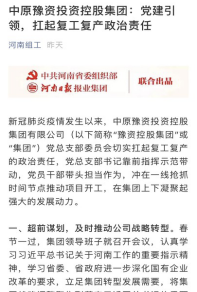 中原豫資投資控股集團 黨建引領 扛起復工復產政治責任 2020.04.13