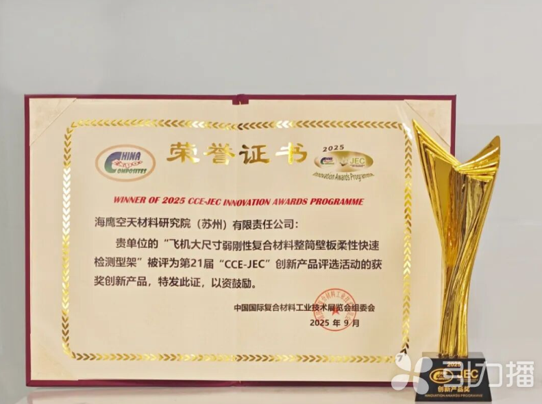 此次空天材料院的獲獎產品為“飛機大尺寸弱剛性復合材料整筒壁板柔性快速檢測型架”,該產品為大尺寸復合材料整筒壁板的研制、檢測與裝配提供了技術保障,可顯著提升工程應用的可靠性和穩定性,對推動復合材料大型化、整體化發展具有重要意義。
