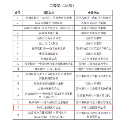 l園區兩部志書獲評江蘇省史志作品優秀成果