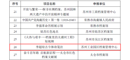 近日,在全市檔案文化精品評選中園區有5項編研成果獲獎,其中,《蘇州工業園區自然村變遷圖志》獲評一等獎,《蘇州工業園區政法志》獲評二等獎,《李超瓊古今體詩箋注》獲評三等獎,另有2項檔案文獻展覽獲評優秀獎。