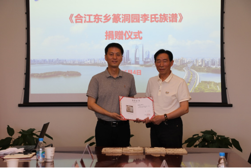 6月4日,四川省合江縣退休教師李雅林將其收藏的《合江東鄉(xiāng)篆洞園李氏族譜》(共4冊)捐贈給園區(qū)檔案館收藏。