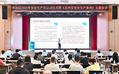 6月4日下午,蘇州獨墅湖科教創新區2025年安全生產月啟動儀式暨《蘇州市安全生產條例》主題宣講在蘇州納米城順利舉辦。科教創新區安委會各成員單位相關負責人、安全生產分聯盟、重點高校、科研院所、樓宇、載體、企業的代表參加活動。