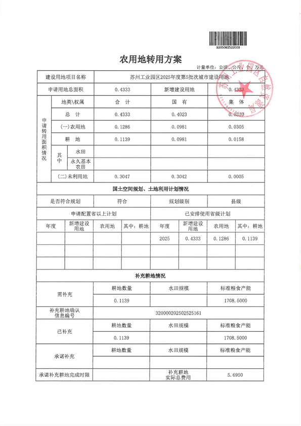 蘇州工業園區2025年度第5批次城市建設用地-報批材料