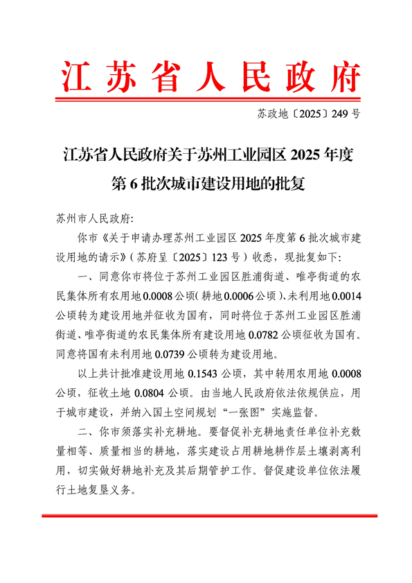 蘇州工業(yè)園區(qū)2025年度第6批次城市建設用地-批文