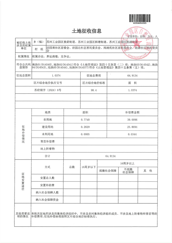 蘇州工業園區2025年度第3批次城市建設用地-報批材料
