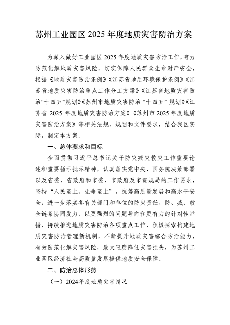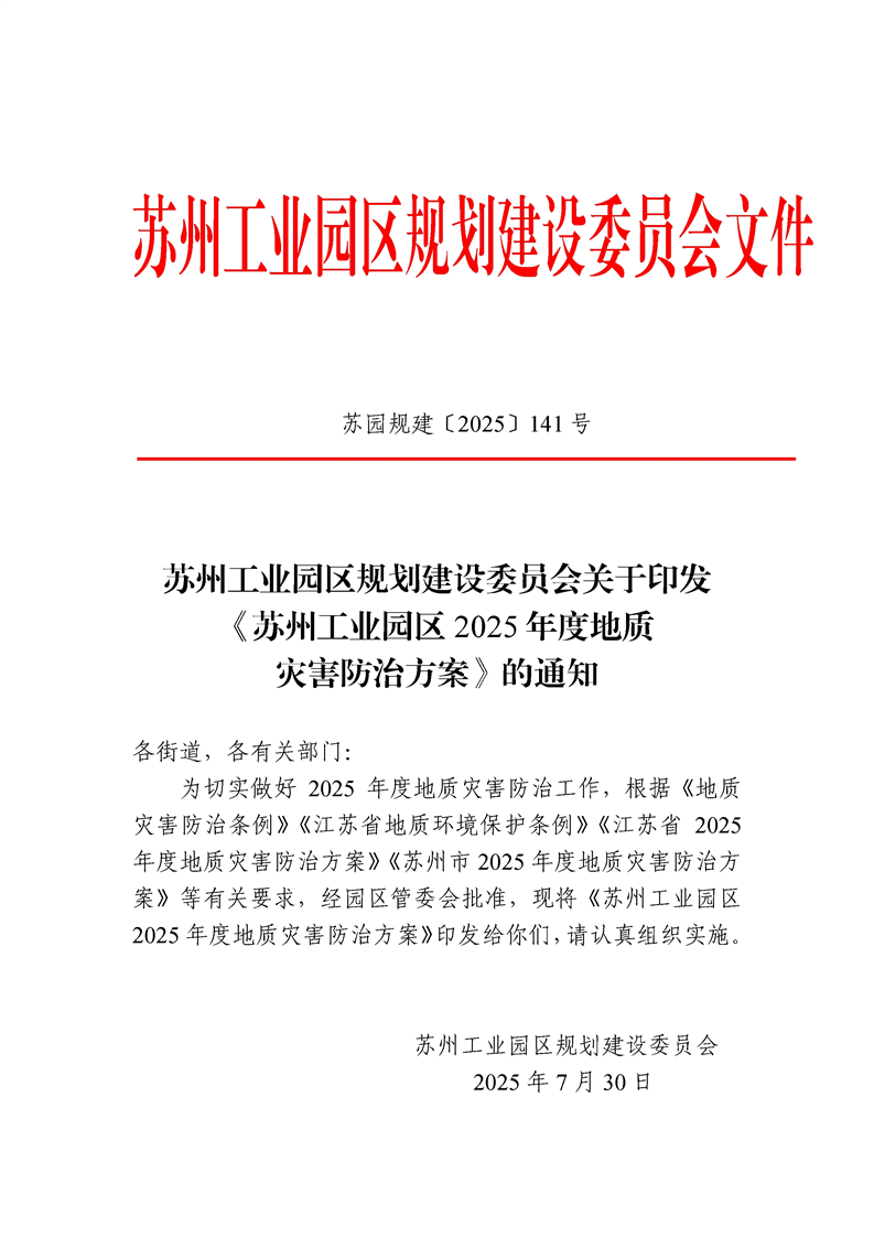 蘇州工業(yè)園區(qū)規(guī)劃建設(shè)委員會(huì)關(guān)于印發(fā)《蘇州工業(yè)園區(qū)2025年度地質(zhì)災(zāi)害防治方案》的通知