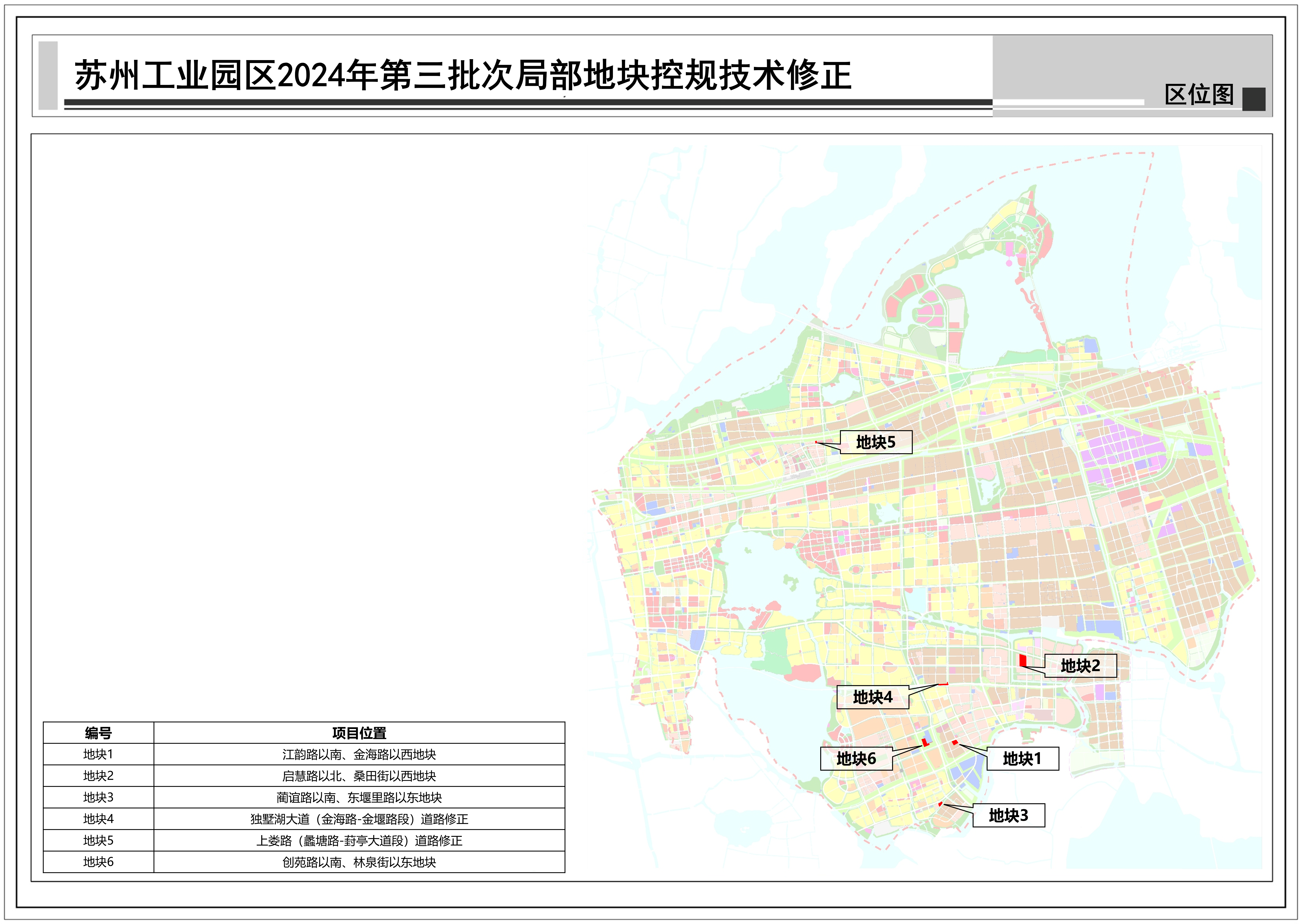 蘇州工業(yè)園區(qū)2024年第三批次局部地塊控規(guī)技術(shù)修正:共包括6個(gè)地塊,總用地面積約0.25平方公里,詳見附圖區(qū)位圖。