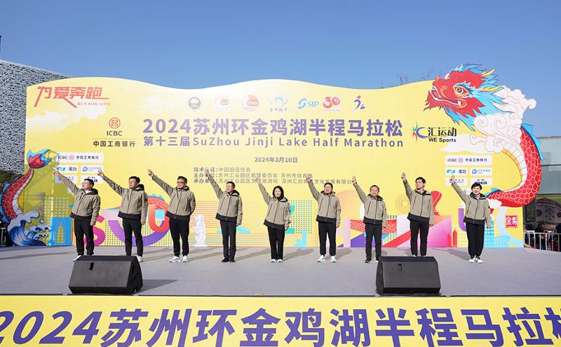 3月10日8時半、2024第13回蘇州環(huán)金鶏湖ハーフマラソンが熱気満々でスタートした。今年のイベントにはハーフマラソン(21.0975キロメートル)、ヘルスラン(約10キロメートル)、ファンラン(約5キロメートル)が含まれ、合計で3萬人の選手が參加した。