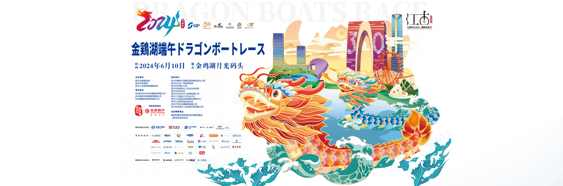 2024金鶏湖端午ドラゴンボートレースは6月10日に開催される。今年は66チーム、計1418人が競技に參加する。參加チームの內に、國有企業が8チームで全體の12%、民営企業が16チームで全體の24%、外資系企業が6チームで全體の9%、大學?研究機関が12チームで全體の19%、社會団體機関が14チームで全體の21%、國家機関が3チームで全體の5%、外國人チームが7チームで全體10%を占めている。