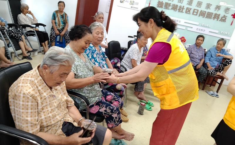 8月2日,唯亭街道綜合為老服務(wù)中心的會(huì)員收到微信通知:活動(dòng)大廳周末也對(duì)外開放了。除了延長開放時(shí)間,多個(gè)社區(qū)養(yǎng)老服務(wù)設(shè)施還為老人提供綠豆湯、酸梅湯和涼茶等解暑飲品;東湖大郡日間照料中心在大廳顯眼處擺放藿香正氣水、降溫頭貼和茶包供有需求的老人自取;熙岸社區(qū)日間照料中心、鳳凰城社區(qū)日間照料中心等養(yǎng)老服務(wù)設(shè)施舉行“手繪團(tuán)扇”等活動(dòng),給炎炎夏日增添了一絲趣味;四季新馨湖園日間照料中心別出心裁地組織老人制作并品嘗涼面,幫助老人刺激食欲、增加胃口......室外艷陽高照蟬鳴悠長,室內(nèi)歡聲笑語不絕于耳,工作人員細(xì)心周到地為老人們提供各種服務(wù),讓老人們體會(huì)到具象的關(guān)愛與尊重。