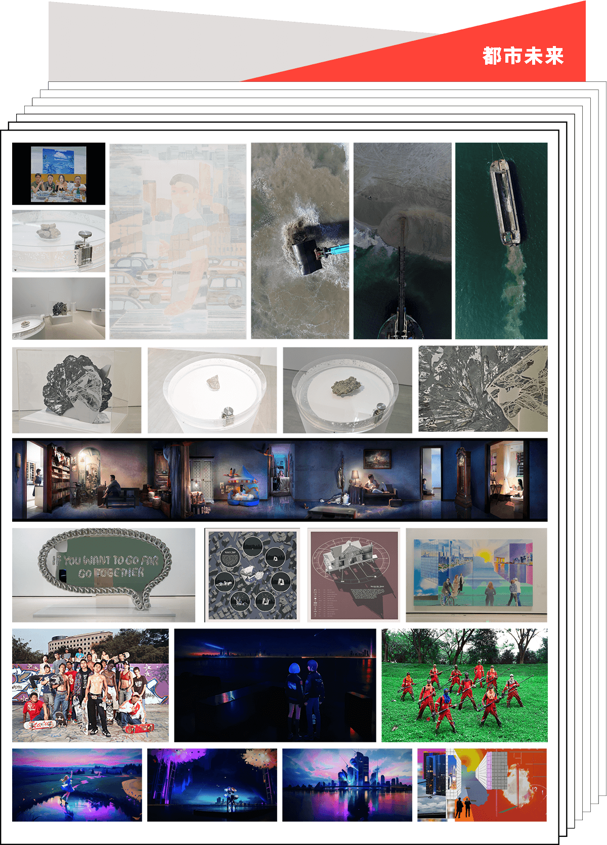 此次展覽包括“家園載情”“文化異彩”“生生相息”“都市未來”四個篇章,匯集了中新兩國當代藝術領域的優秀藝術家49位,共展出作品近百件。展覽以藝術的語匯,展現中新兩國在城市發展、社會人文、科技創新、生態文明等方面的實踐和交融。值得一提的是,其中多幅作品聚焦“中新合作”主題,是為本次展覽“量身”創作。