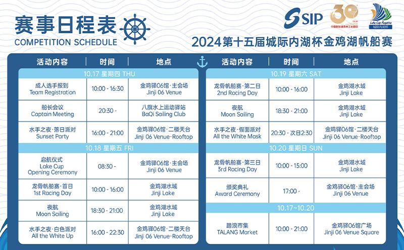 賽事啟航儀式首次在新開放的金雞驛06館舉辦,依托絕佳打卡觀賽位,給參賽選手及觀賽者帶來全新體驗。為普及帆船文化,帶動更多市民參與體驗帆船,組委會在賽事前后策劃發(fā)起系列公益專場,為市民、游客提供專屬帆船體驗項目。比賽期間,組委會還將繼續(xù)舉辦夜航體驗活動,讓夜燈閃爍的帆船持續(xù)點“靚”金雞湖,為城市創(chuàng)造夜晚的獨特氛圍。