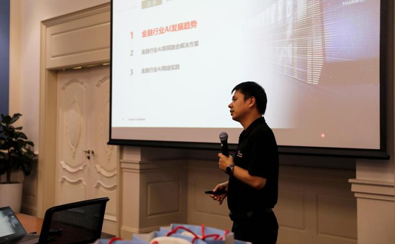 活動現(xiàn)場,華為江蘇政企數(shù)通解決方案銷售部部長蔡國棟在致辭中表達(dá)了AI技術(shù)在金融行業(yè)中的重要性以及推動行業(yè)智能化轉(zhuǎn)型的必要性。