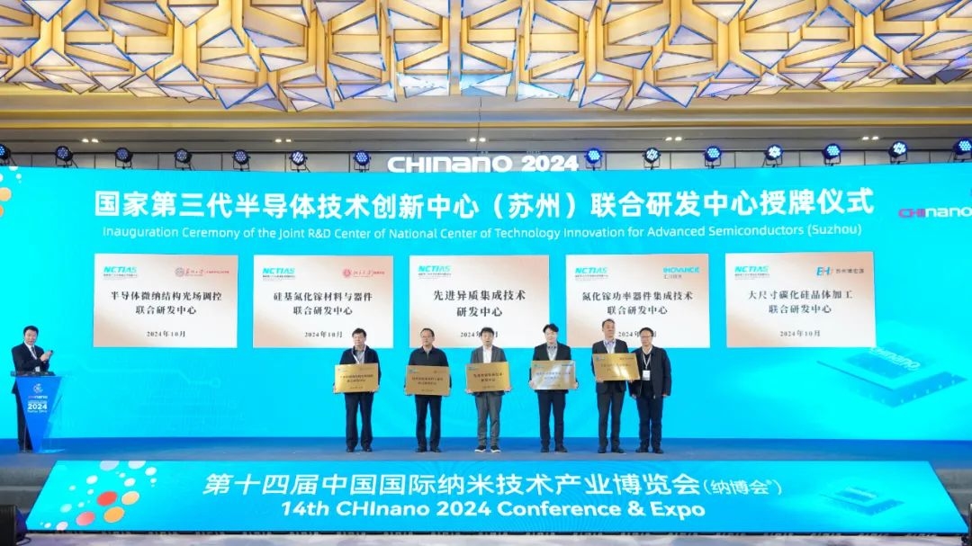 10月23日,第十四屆中國(guó)國(guó)際納米技術(shù)產(chǎn)業(yè)博覽會(huì)在蘇州工業(yè)園區(qū)開(kāi)幕。在開(kāi)幕式上,國(guó)家第三代半導(dǎo)體技術(shù)創(chuàng)新中心(蘇州)十大科技問(wèn)題及研發(fā)成果發(fā)布,并為國(guó)家第三代半導(dǎo)體技術(shù)創(chuàng)新中心(蘇州)聯(lián)合研發(fā)中心授牌。
