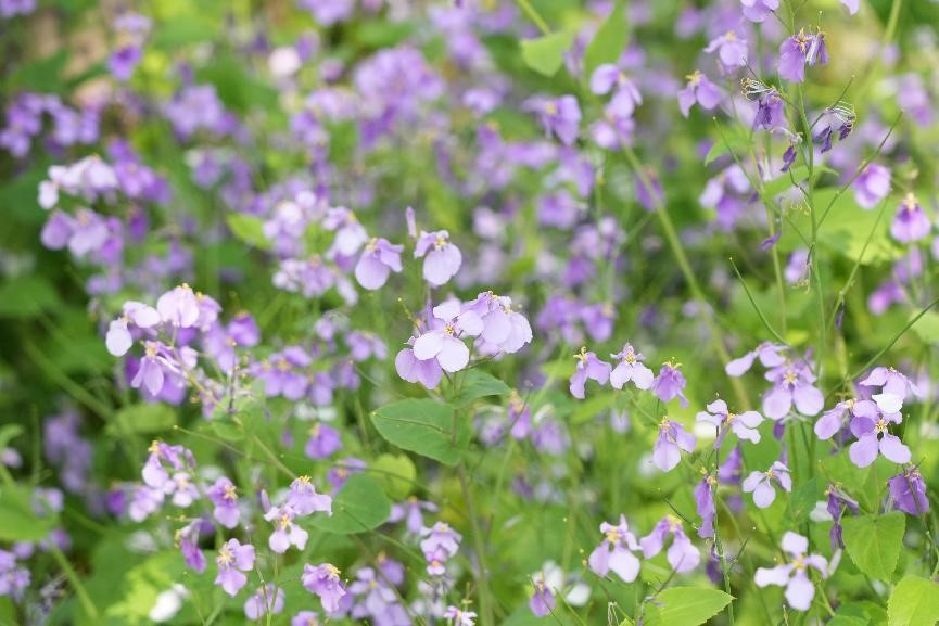 成片的二月蘭盛開時(shí)如同一片紫色的海洋,在春風(fēng)中起伏蕩漾,充滿了神秘與浪漫的氣息。