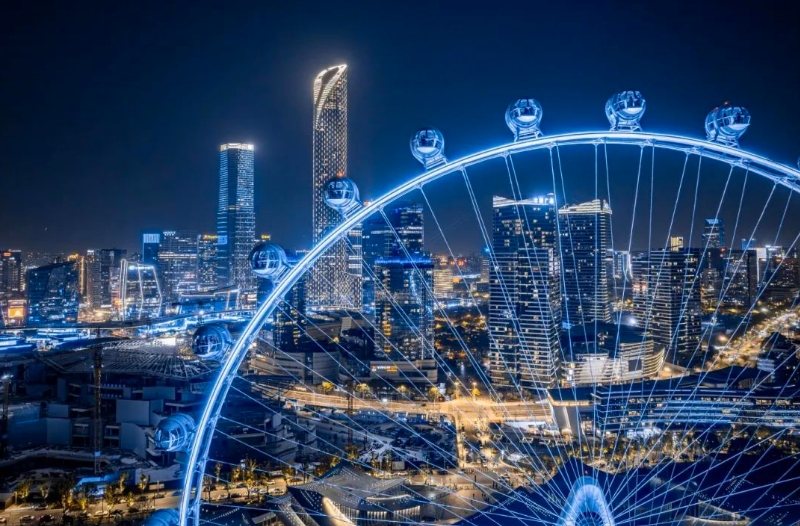 金雞湖右岸,絡繹不絕的人流彰顯出這一新晉“頂流”對市民游客的巨大吸引力。作為蘇州新的城市地標,“蘇州之眼”摩天輪在小長假期間迎來一波“大流量”,其以充滿科技感、現代感的體驗,讓游人感受蘇州的現代發展和浪漫情懷。