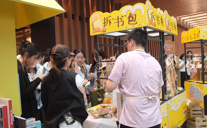 巴斯克蛋糕、窯烤堿水球、德腸面包、拇指大小的可頌,還有各種披薩、面包片……拆“書”包展位上,空山手作主理人吳昊帶來了幾十種產品。來往市民現場寫下心中關于閱讀與美食的奇思妙想,就能領取一份“書”包,開啟味蕾的神奇之旅。在這個懂烘焙的文藝青年看來,麥香與書香有著殊途同歸的默契。“面包滿足口腹之欲,閱讀充盈精神世界,拆‘書’包將二者有機結合,為大家提供雙重體驗。我們希望人們不僅能夠吃到美味的面包,而且能夠獲得精神上的補給。此次參與全民閱讀系列活動,我們也是希望把這樣的生活理念和食品態度與更多人共享!”