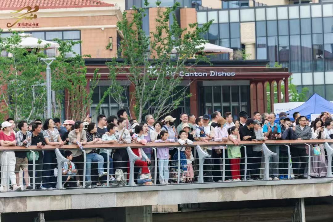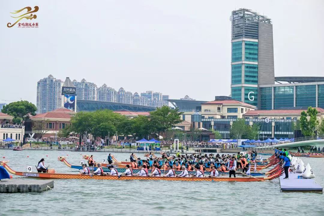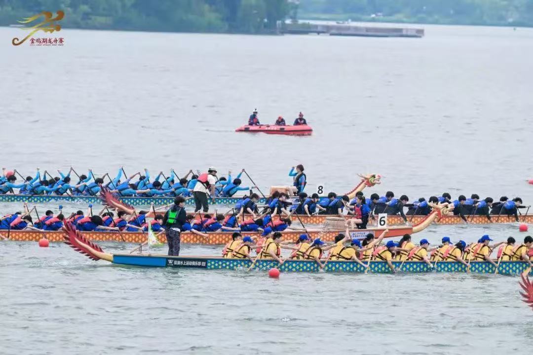 伴隨著激昂的鼓點(diǎn),一艘艘龍舟如離弦之箭,在金雞湖面上劃出一道道銀色的浪痕。岸邊的觀眾也被熱烈的氛圍點(diǎn)燃,歡呼聲、加油聲一浪高過(guò)一浪。