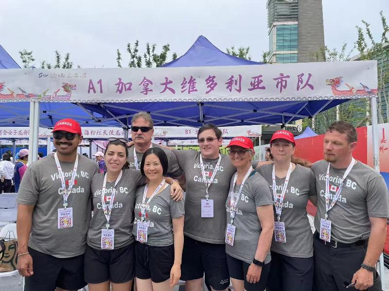今年是中國(guó)與加拿大建交55周年,也是蘇州市與加拿大維多利亞市結(jié)為友好城市45周年。一批當(dāng)?shù)氐凝堉蹛?ài)好者應(yīng)邀遠(yuǎn)道而來(lái),與蘇州市民共度端午。這支臨時(shí)組建的隊(duì)伍共12人,男女混合。隊(duì)員們來(lái)自各行各業(yè),最大的70歲,最小的28歲。