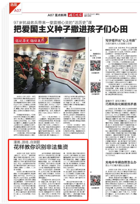 此次“防范非法金融活動(dòng)宣傳月”活動(dòng)吸引媒體關(guān)注,《姑蘇晚報(bào)》刊發(fā)《花樣教你識(shí)別非法集資》一文,聚焦商務(wù)區(qū)在“防非”宣傳上的創(chuàng)新模式。
