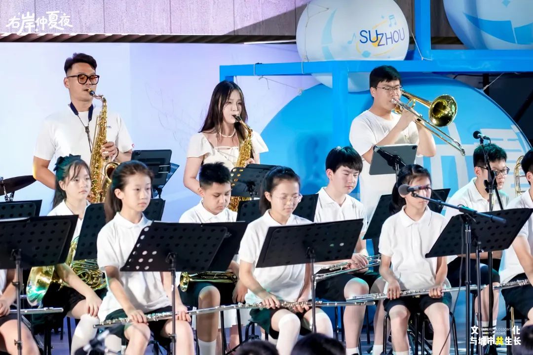 聚光燈下,蘇州工業(yè)園區(qū)青少年交響樂團(tuán)、蘇州工業(yè)園區(qū)青少年交響樂團(tuán)教師樂隊、圓融·花季青少年藝術(shù)團(tuán)、小白帆合唱團(tuán)多支優(yōu)秀青少年藝術(shù)團(tuán)體聯(lián)袂獻(xiàn)藝,“小小演奏家”們以純粹的熱愛與專業(yè)的演繹,為市民游客帶來了一場酣暢淋漓的夏夜音樂體驗。