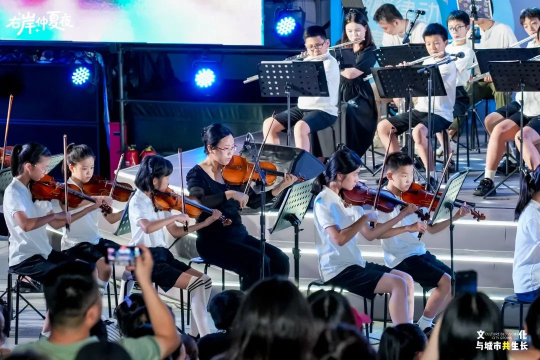 現(xiàn)場,《行星號角》的浩瀚、《海芋戀》的清新、《生命之杯》的激昂、《魔法滿屋》的奇幻魔力輪番上演……最終,所有熱愛與激情匯成溫暖的大合唱《歌聲與微笑》,為右岸之夜畫上動人句點。“我們就住在附近,晚飯后散步是日常。今晚能免費聽到這么高水準(zhǔn)的青少年音樂會,感覺非常不錯,園區(qū)的文化氛圍越來越濃了!”市民王女士表示。