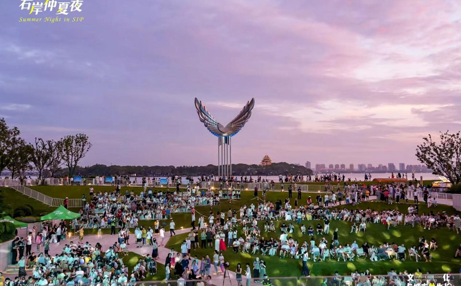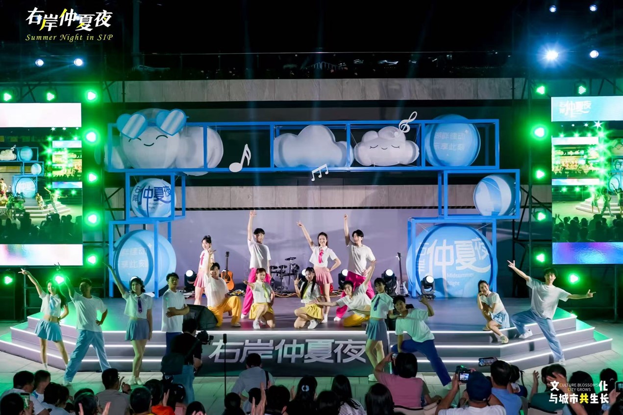 “右岸仲夏夜”推出二期,已成長為園區嶄新的文化IP,不僅為市民奉上豐盛的精神盛宴,更成為展示區域文旅魅力的閃亮名片。“我帶孩子來這邊散步納涼,沒想到碰上這么精彩的演出。”市民趙女士說道,“現在的園區既有煙火氣,又充滿藝術范兒,周末遛娃、全家放松再合適不過。”“全民、全齡、全域、全時”的理念,讓藝術融入湖畔晚風,成為群眾夏夜消暑納涼的好去處。