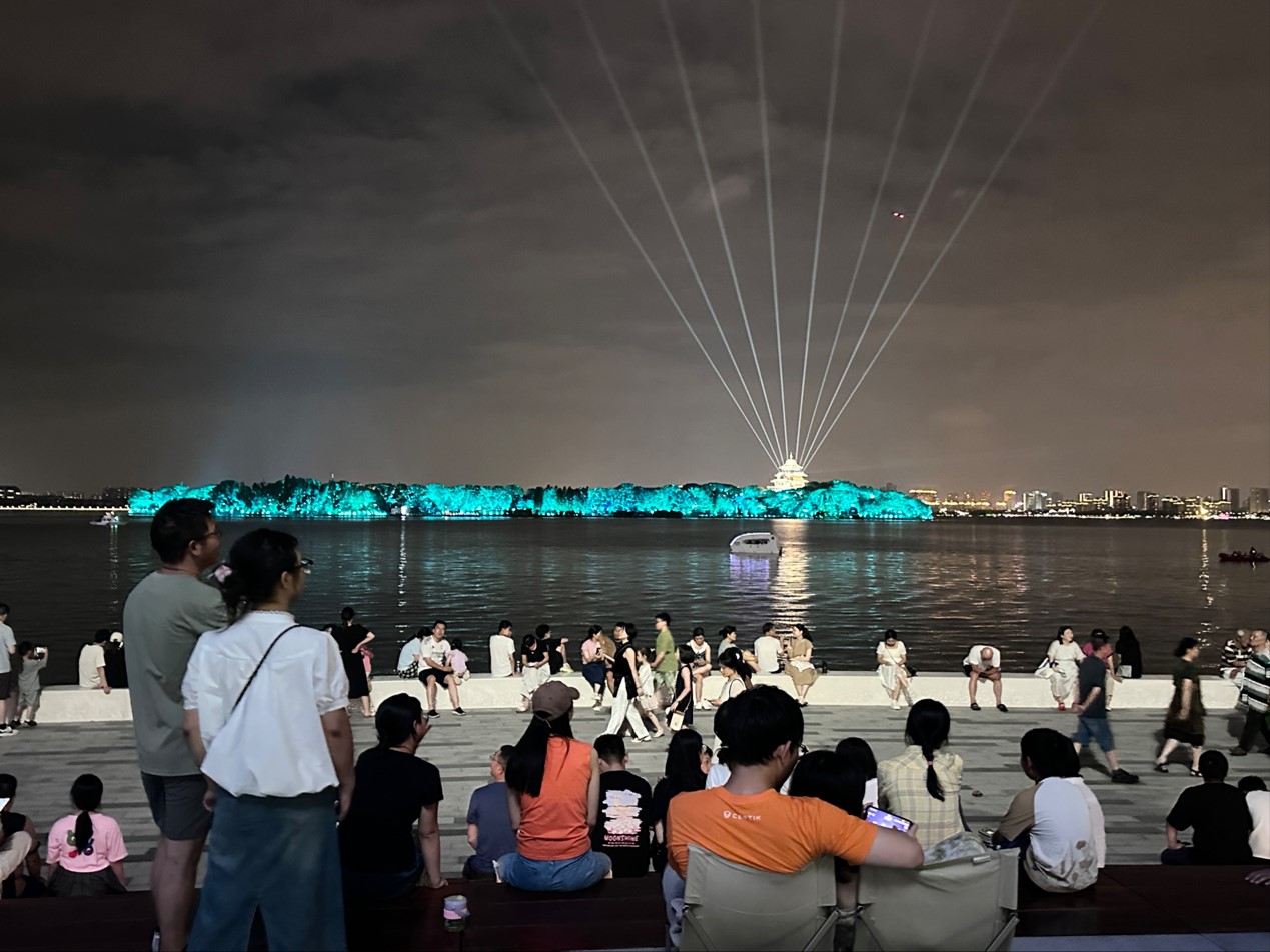 下沉廣場的臺階上,銀發老人搖動蒲扇,孩童騎在父親肩頭歡呼,情侶依偎享受浪漫,不同年齡、不同身份的觀眾在此共享藝術狂歡。“我帶著孩子暑假來蘇州旅游,剛打卡完摩天輪,走到湖邊就被旋律勾住了腳步。”游客魏先生舉著手機記錄精彩瞬間,“這種露天音樂會太有氛圍了,很接地氣,感覺整個夏天都鮮活起來,這趟不虛此行。”