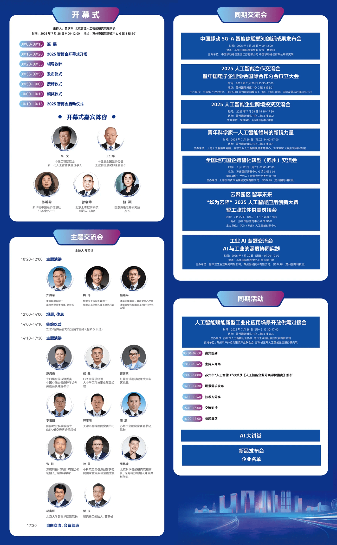7月28日,2025人工智能產(chǎn)品應(yīng)用博覽會在蘇州工業(yè)園區(qū)開幕,在炎炎夏日里開啟一段未來感十足的科技之旅。作為中國經(jīng)濟發(fā)展最活躍、開放程度最高、創(chuàng)新能力最強的區(qū)域之一,園區(qū)在人工智能領(lǐng)域前瞻布局,以政策引領(lǐng)、服務(wù)賦能、場景創(chuàng)新等多元發(fā)力,構(gòu)建起產(chǎn)業(yè)發(fā)展的全鏈支撐,著力描繪創(chuàng)新之城的未來圖景。頂層架構(gòu) 前瞻布局 人工智能產(chǎn)業(yè)加速生長2017年,國家出臺《新一代人工智能發(fā)展規(guī)劃》,人工智能正式上升為國家戰(zhàn)略。園區(qū)同年印發(fā)《蘇州工業(yè)園區(qū)人工智能發(fā)展行動計劃(2017-2020)》和《加快人工智能產(chǎn)業(yè)發(fā)展的若干意見》,成為國內(nèi)首個明確提出聚焦人工智能及數(shù)字產(chǎn)業(yè),并制定系統(tǒng)產(chǎn)業(yè)規(guī)劃的國家級高新區(qū)。為... [詳細]