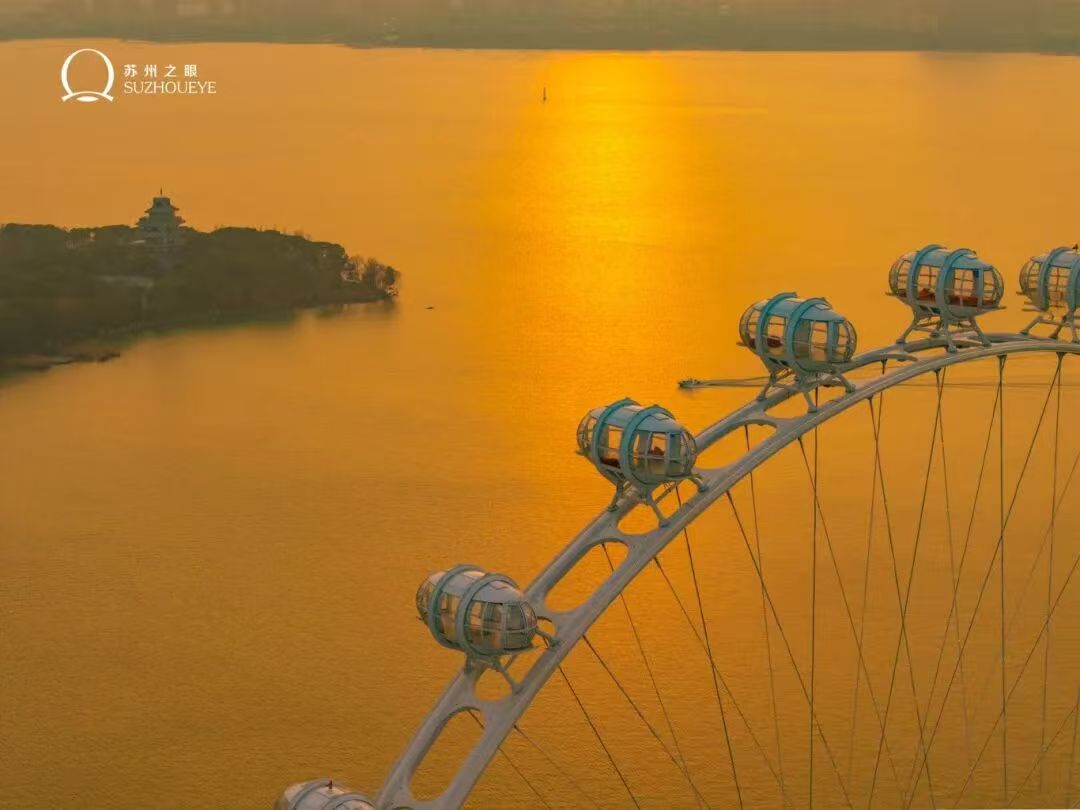 “蘇州之眼”摩天輪在這個假期成功“出圈”,化身為“云朵治愈季”的夢幻舞臺。新推出的“盲盒艙”“寵物友好艙”及“下午茶艙”備受游客歡迎,人們期待在緩緩升空的過程中,將金雞湖的落日與璀璨夜景盡收眼底。