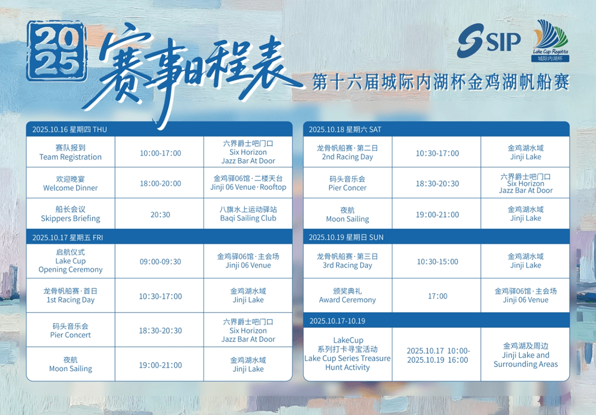 秋風(fēng)送爽,彩帆再啟。2025第十六屆城際內(nèi)湖杯金雞湖帆船賽將于10月16日至19日在蘇州金雞湖正式啟幕。作為蘇州工業(yè)園區(qū)三大品牌體育賽事之一,該賽事已成功舉辦十五屆,本屆賽事以“同帆共進(jìn),聚勢無雙”為主題,聚焦“國際競技之力、水岸文旅之韻、全民樂活之美”三大維度,通過多國選手同臺競技、專業(yè)與大眾相結(jié)合的賽制設(shè)置,以及體育、文化、旅游元素的深度融合,打造獨(dú)具江南文化特色的城市體育名片。群帆競渡,共逐金雞湖本屆賽事設(shè)置專業(yè)龍骨帆船賽與大眾趣味系列賽兩大板塊。專業(yè)龍骨帆船賽涵蓋J80、DC20及FT7.5三大船型;大眾賽事則以槳板與皮劃艇為主,零基礎(chǔ)選手亦可輕松參與,體驗(yàn)水上運(yùn)動(dòng)的樂趣。賽程設(shè)置豐富多... [詳細(xì)]