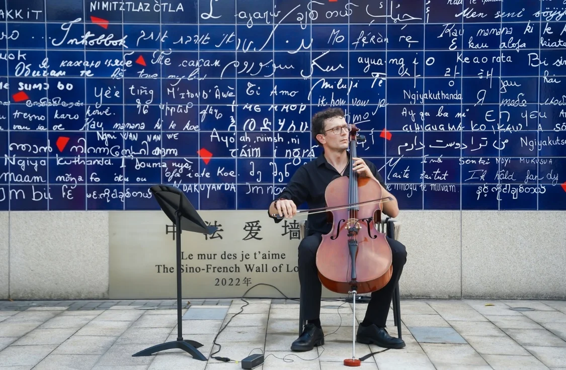 圖說:藝術(shù)家在中法愛墻前表演(蘇州工業(yè)園區(qū)供圖)