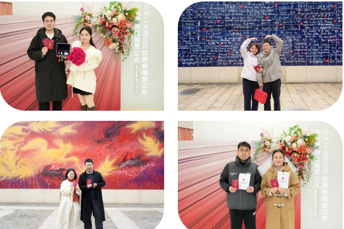 現(xiàn)場洋溢著幸福與儀式感,下午1點活動開始后,前10對完成婚姻登記的新人如約獲贈數(shù)字篆刻專屬印章印章由“印記園區(qū)印向未來”蘇州工業(yè)園區(qū)大眾篆刻作品展特別定制,將新人姓名以傳統(tǒng)篆刻藝術(shù)數(shù)字化呈現(xiàn),可永久保存、隨時調(diào)用。一枚印章,既是愛情的信物,也是新年最獨特的紀念。