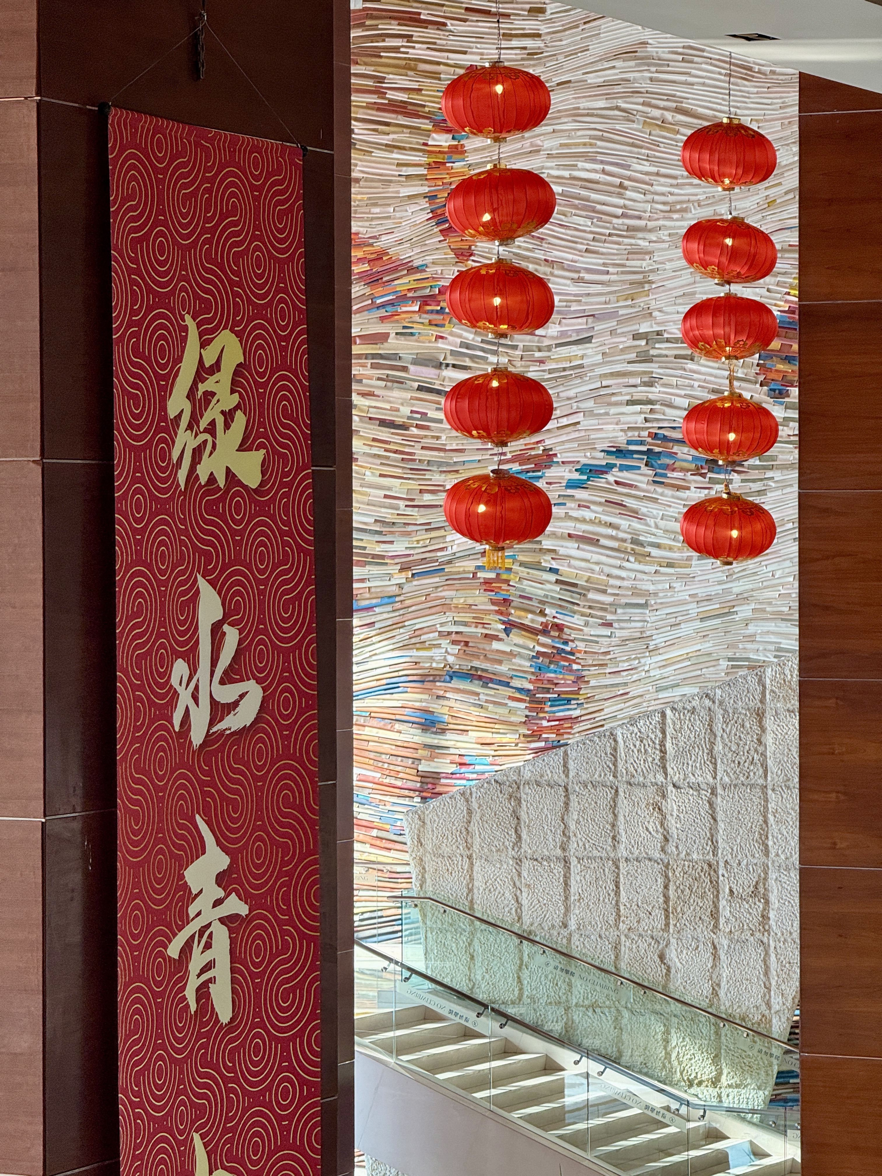 年味,不止于活動(dòng),更浸潤在空間與細(xì)節(jié)中。金雞湖大酒店大堂以《姑蘇繁華圖》迎賓,將賓客悄然引入江南意境;酒店整體設(shè)計(jì)融匯園林“借景”智慧,營造出自然與人文相映的沉浸場景。