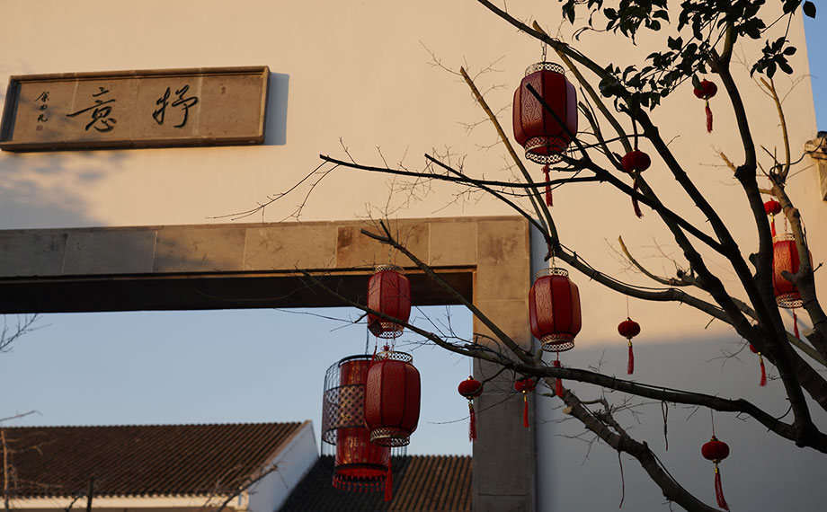 在斜塘老街,各式各樣的燈籠與傳統(tǒng)的蘇式建筑相得益彰,為原本因季節(jié)更迭而顯得枯寂的樹木點(diǎn)綴上鮮艷的色彩。