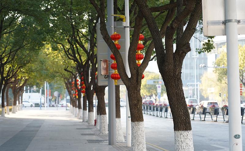 在蘇州大道、圓融環(huán)路等主干道旁,一盞盞大紅燈籠高高掛起,沐浴著冬日的暖陽(yáng),在微風(fēng)中輕輕搖曳,仿佛在向人們?cè)V說(shuō)著新年的故事。
