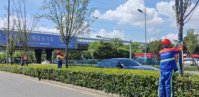 全面排查并完成高大易倒伏喬木的加固支撐和安全處置。對2500余棵樹冠較大喬木進(jìn)行梳枝修剪,整理并加固帶有支撐的喬木6500余棵,預(yù)備500副鋼管支撐,組建倒伏苗木處置隊伍。加固或拆除高空構(gòu)筑物、工地圍擋等設(shè)施,消除傾倒隱患,排查公共停車場等地下空間的安全運行情況。開展全區(qū)路燈、景觀燈、廣告牌及交通設(shè)施巡查加固,嚴(yán)防高空墜物風(fēng)險。在公園等臨水區(qū)域設(shè)置警戒線,同步加強(qiáng)保安巡查頻次。