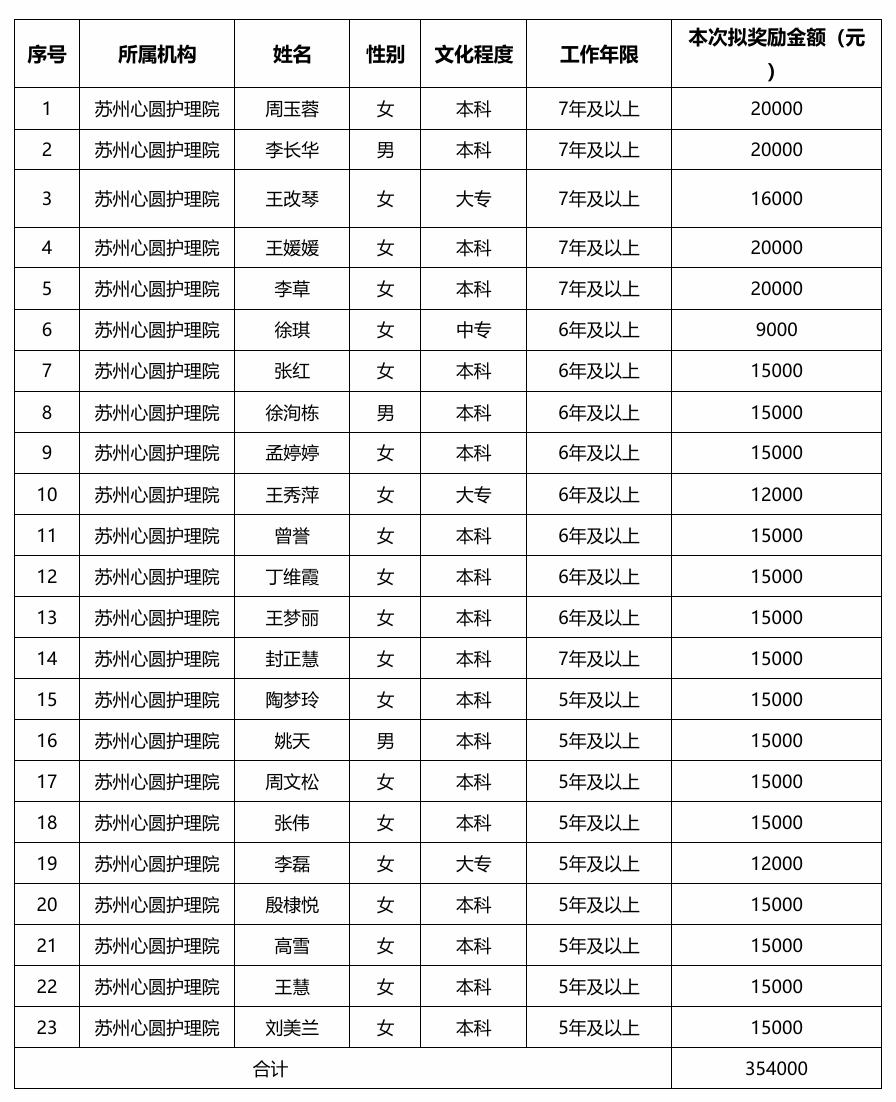 根據(jù)《蘇州市養(yǎng)老從業(yè)隊(duì)伍培訓(xùn)和入職獎(jiǎng)勵(lì)管理辦法》(蘇政民老〔2019〕10號(hào))文件,經(jīng)個(gè)人申請(qǐng)、養(yǎng)老機(jī)構(gòu)申報(bào),區(qū)民政部門核實(shí)的符合條件享受2024年度入職獎(jiǎng)勵(lì)的養(yǎng)老機(jī)構(gòu)從業(yè)人員發(fā)放名單、擬發(fā)放金額予以公示。