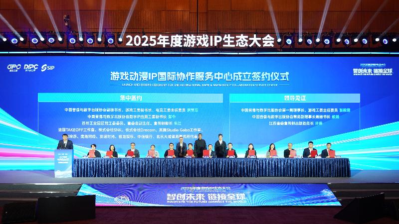 會上,游戲動漫IP國際協作服務中心揭牌成立,13家機構代表進行集中簽約。該中心由中國音像與數字出版協會游戲工作委員會、數字IP應用工作委員會以及蘇州工業園區聯合發起成立,未來可提供涵蓋產業生態優化與資源整合、國際協作與市場開拓、版權法律保護、資本對接與IP金融、數據研究分析等多方面的支持和服務,促進全球游戲動漫產業深度交流合作,為中國游戲IP國際化進程注入新動力。