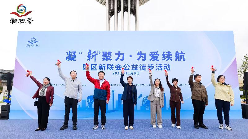 11月9日上午,凝“新”聚力為愛續(xù)航——園區(qū)新聯(lián)會公益徒步活動在金雞湖景區(qū)“飛翔”雕塑廣場啟幕。來自蘇州工業(yè)園區(qū)新的社會階層人士聯(lián)合會(以下簡稱“園區(qū)新聯(lián)會”)成員及其他園區(qū)統(tǒng)一戰(zhàn)線成員約150人齊聚于此,以徒步踐初心,用行動傳溫情。