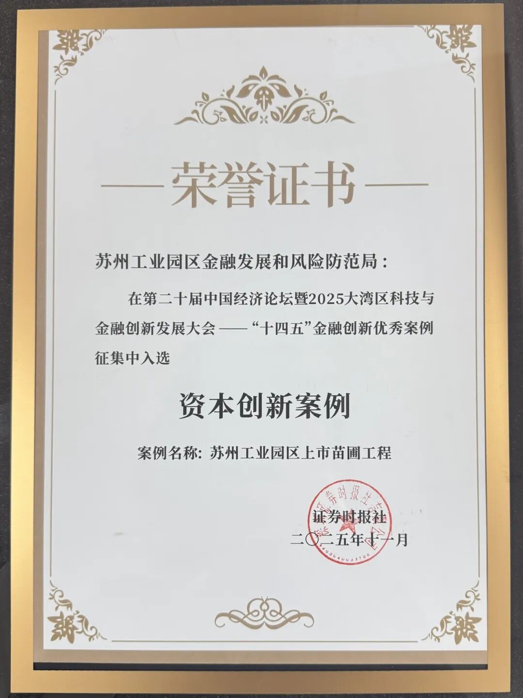 11月18日,第二十屆中國經(jīng)濟(jì)論壇在廣州南沙召開,會(huì)上發(fā)布了“十四五”金融創(chuàng)新優(yōu)秀案例,蘇州工業(yè)園區(qū)“上市苗圃工程”成功入選,是本次入選的唯一政務(wù)服務(wù)創(chuàng)新案例。