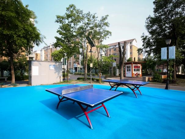根據居民代表提出的問題,施家浜社區迅速成立專項小組,全面梳理閑置空間,最終制定出一份綜合性健身場地建設方案。方案形成后,社區并未急于推進,而是邀請居民代表全程參與,從健身器材選型到場地布局規劃進行反復商討。最終,6套室外健身器材在公共區域安裝到位,3張乒乓球桌分別落戶室內外,一條400米長的彩色健身步道鋪設完成,原本的閑置用房也被改造為舞蹈房和多功能活動室。如今,居民日常鍛煉觸手可及,曾經沉寂的閑置角落,已然蛻變為全民共享的“活力健身圈”。