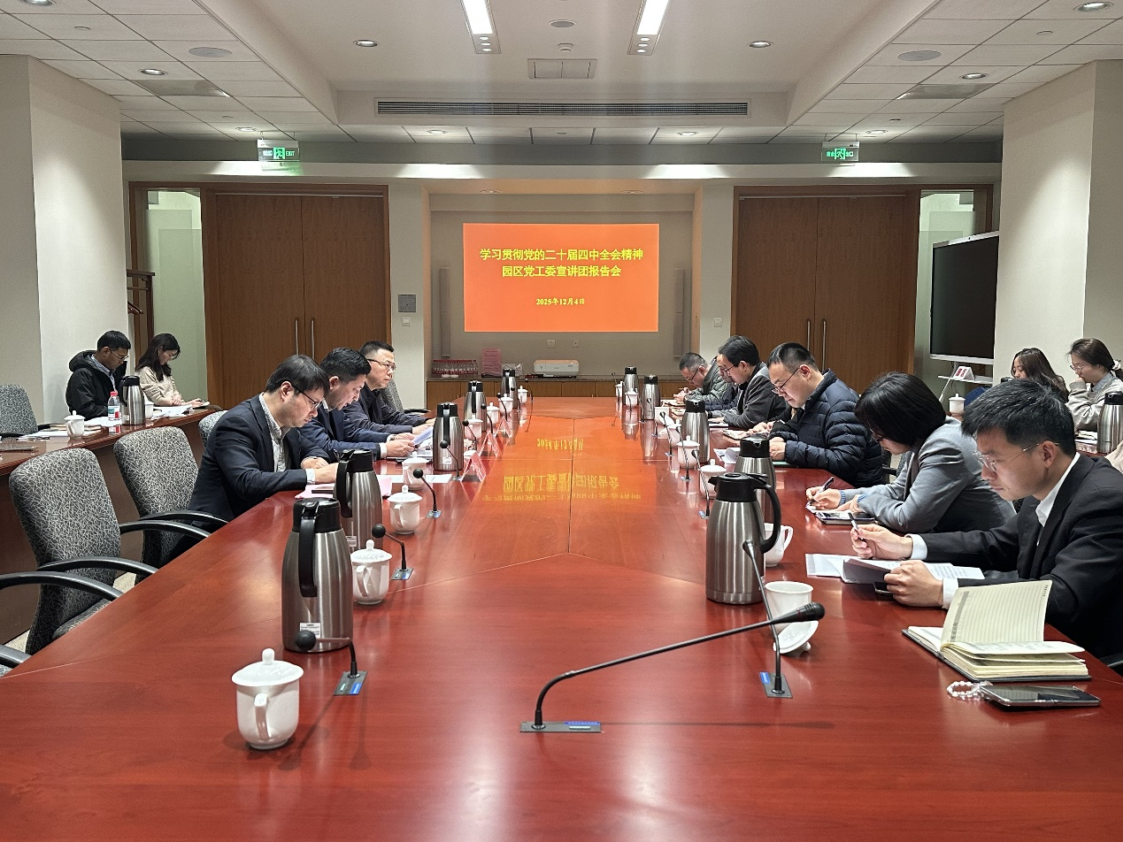園區黨工委宣講團成員、政法委副書記、司法局局長傅剛作宣講報告。宣講會上,傅剛圍繞黨的二十屆四中全會基本情況、《建議》起草過程、“十五五”時期在基本實現社會主義現代化進程中的關鍵地位等方面,結合園區政法工作實際,對全會精神作了系統闡釋和深入解讀。