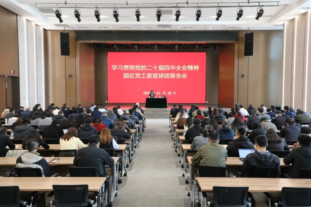 11月28日,學(xué)習(xí)貫徹黨的二十屆四中全會(huì)精神園區(qū)黨工委宣講團(tuán)報(bào)告會(huì)在納米公司舉行。