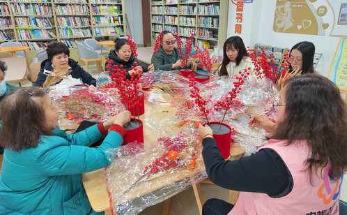 新蘇社區的活動室內,社區婦聯邀請女性同胞們齊聚一堂,將銀柳、冬青與仿真花材精心搭配,插入福桶,再點綴寓意美好的小掛件,一盆盆錯落有致的年宵花漸次成型。親子手作區里,家長與孩子在“紅色管家”志愿者的指導下,共同制作“元宵葫蘆香囊”,穿針引線、填充香料,一個個小巧精致、寓意“福祿雙全”的香囊在協作中成型。活動尾聲,新蘇社區的全體家庭手持作品,在鏡頭前定格下溫馨的全家福;夏家橋社區的元宵主題打卡墻上,一張張笑臉在鏡頭前綻放。鄰里情、親子情交織融合,為這場相聚畫上圓滿句號。